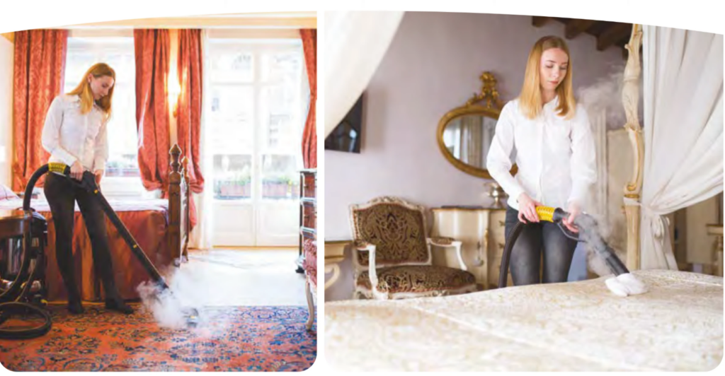 W hotelach, restauracjach i obiektach użyteczności publicznej parownice Tecnovap zapewniają wysoki poziom czystości i higieny. Doskonale sprawdzają się przy czyszczeniu kuchni, łazienek, pokoi hotelowych, stref SPA oraz powierzchni wspólnych, podnosząc standard obsługi gości.